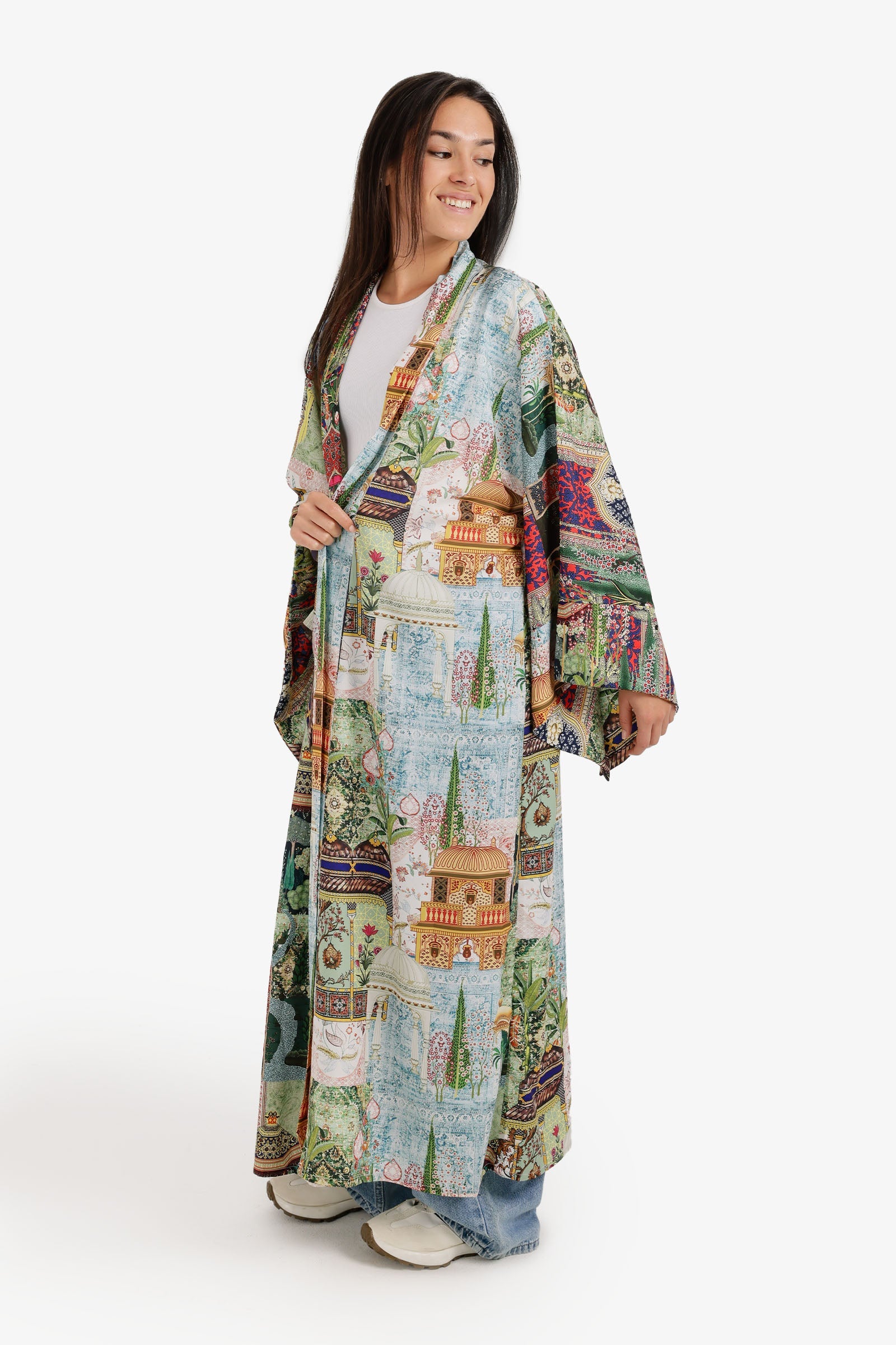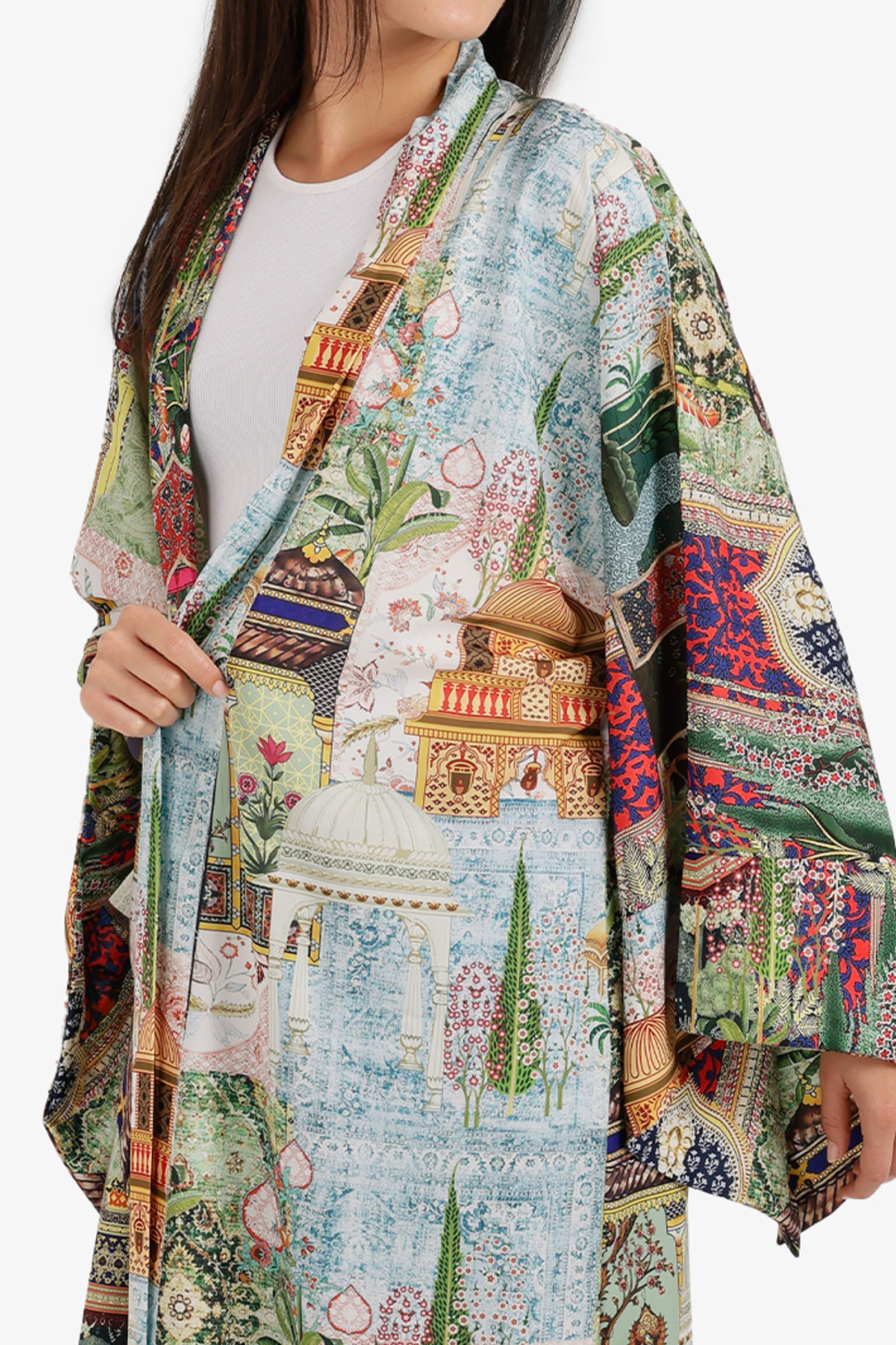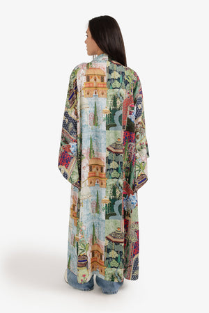Scenic-Print Kimono Relaxed Fit Maxi Length – Multicolor