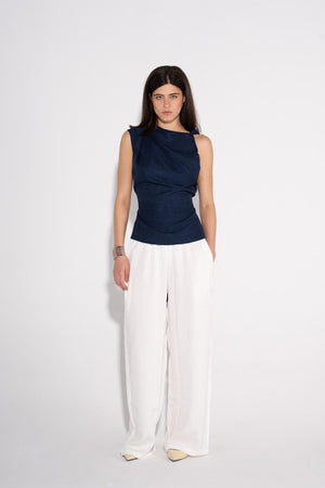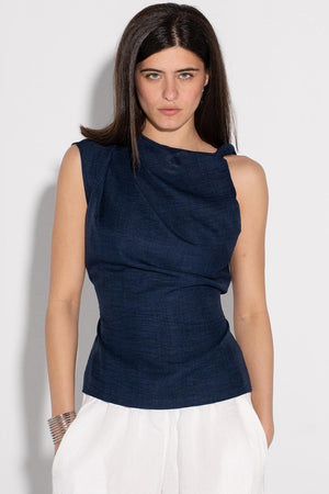Draped Sleeveless Top - Navy