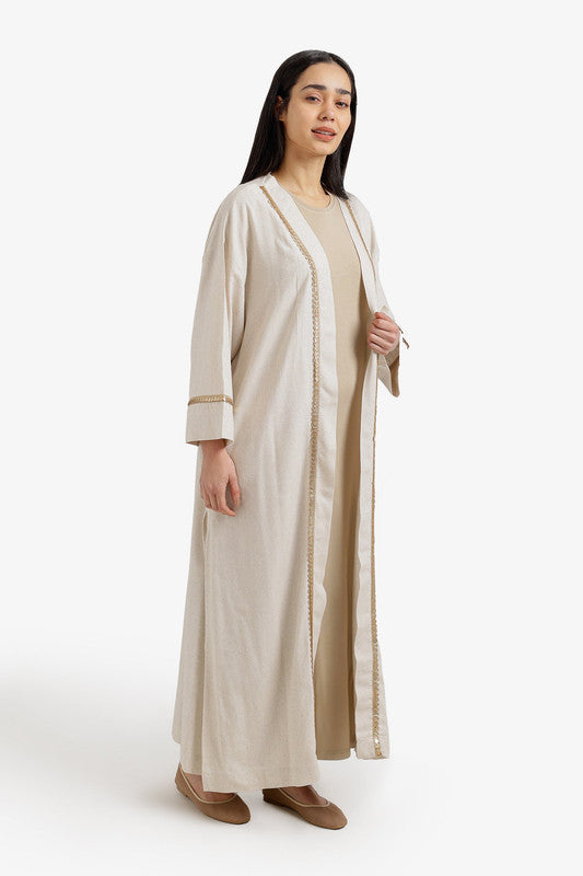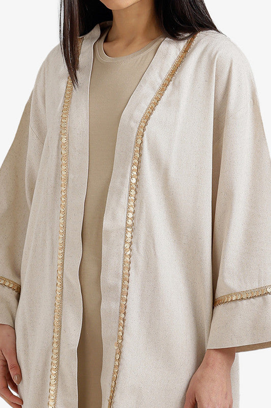 Sequin Maxi Kimono Relaxed Fit Side Slit – Ivory