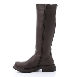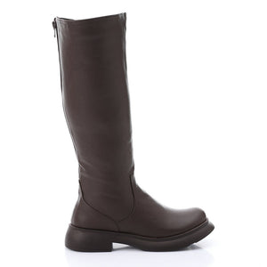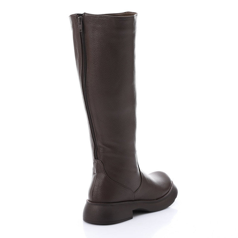 Sleek Double Zipper Knee-High Boots – Brown