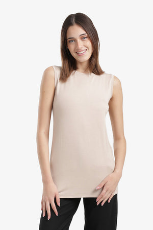 Slim Fit Sleeveless T-Shirt with Crew Neck – Beige