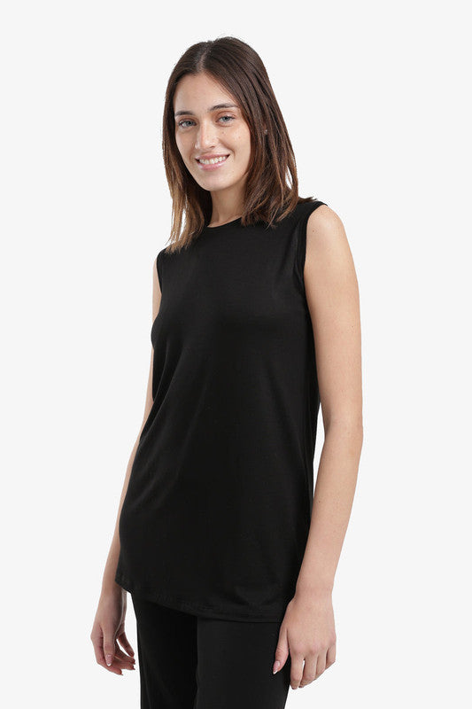 Slim Fit Sleeveless T-Shirt with Crew Neck – Black
