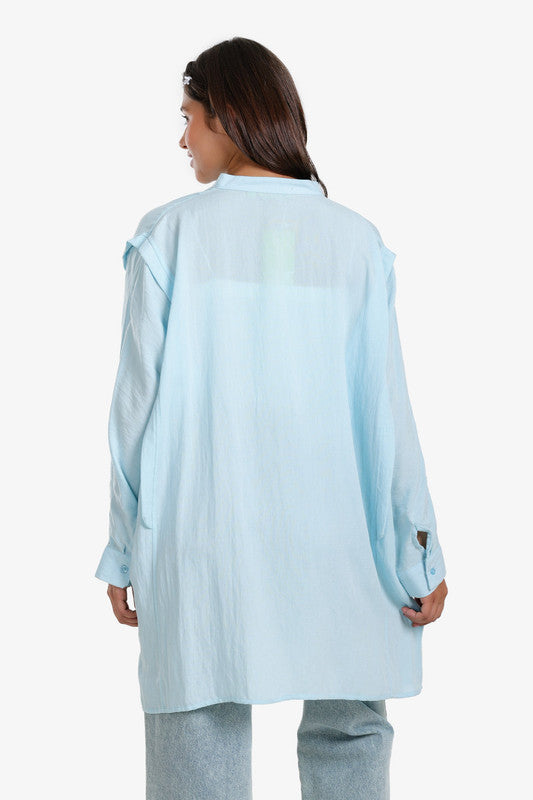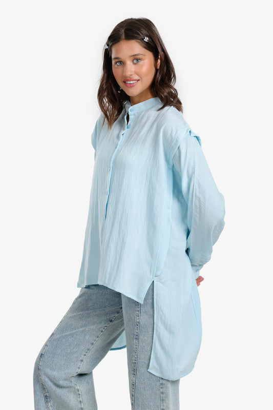 Solid Asymmetric Hem Shirt – Light Blue