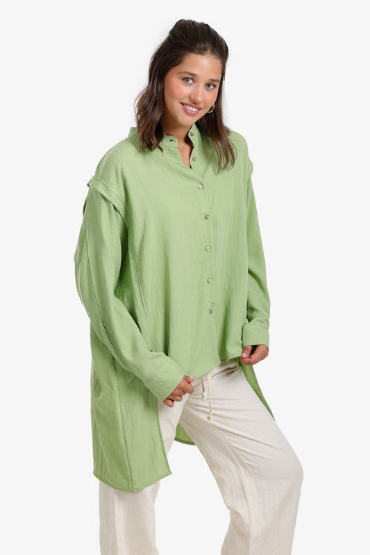 Solid Asymmetric Hem Shirt – Light Mint