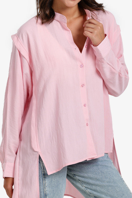Solid Asymmetric Hem Shirt – Rose