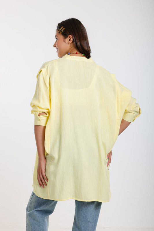 - Details & Trims: Dropped shoulder, fluid drape, clean finish