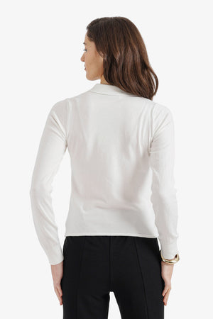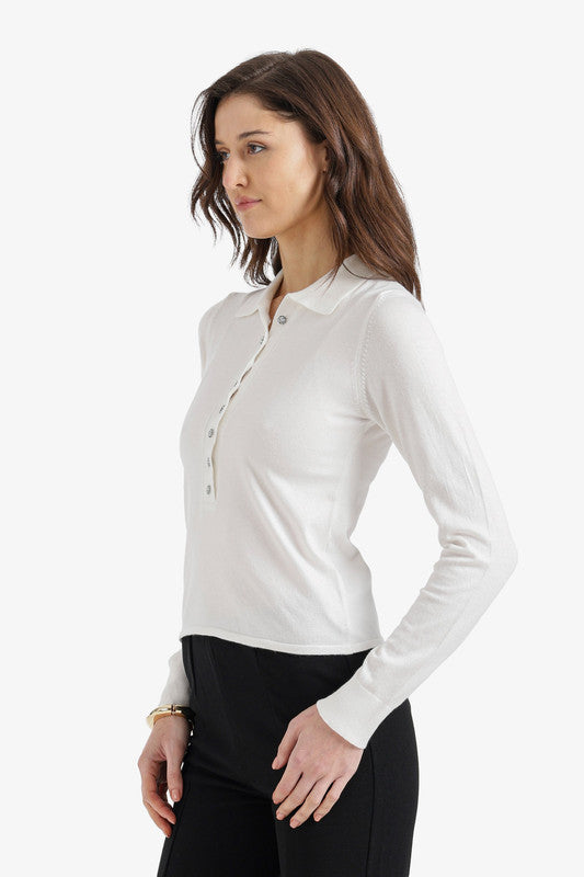 Solid Buttoned Slim Fit Pullover – Off White
