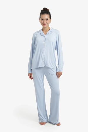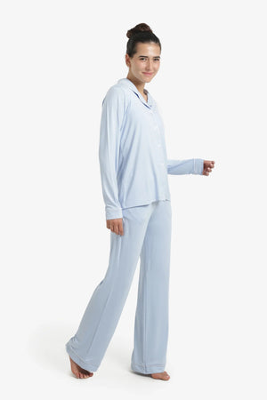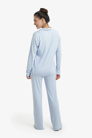 Solid Contrast Piping Pajama Set – Light Blue
