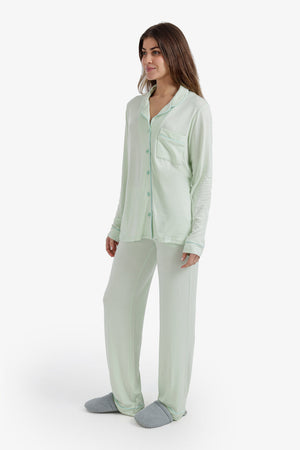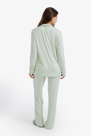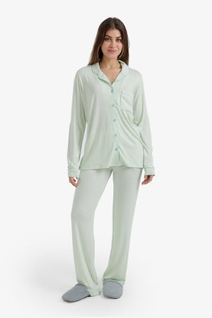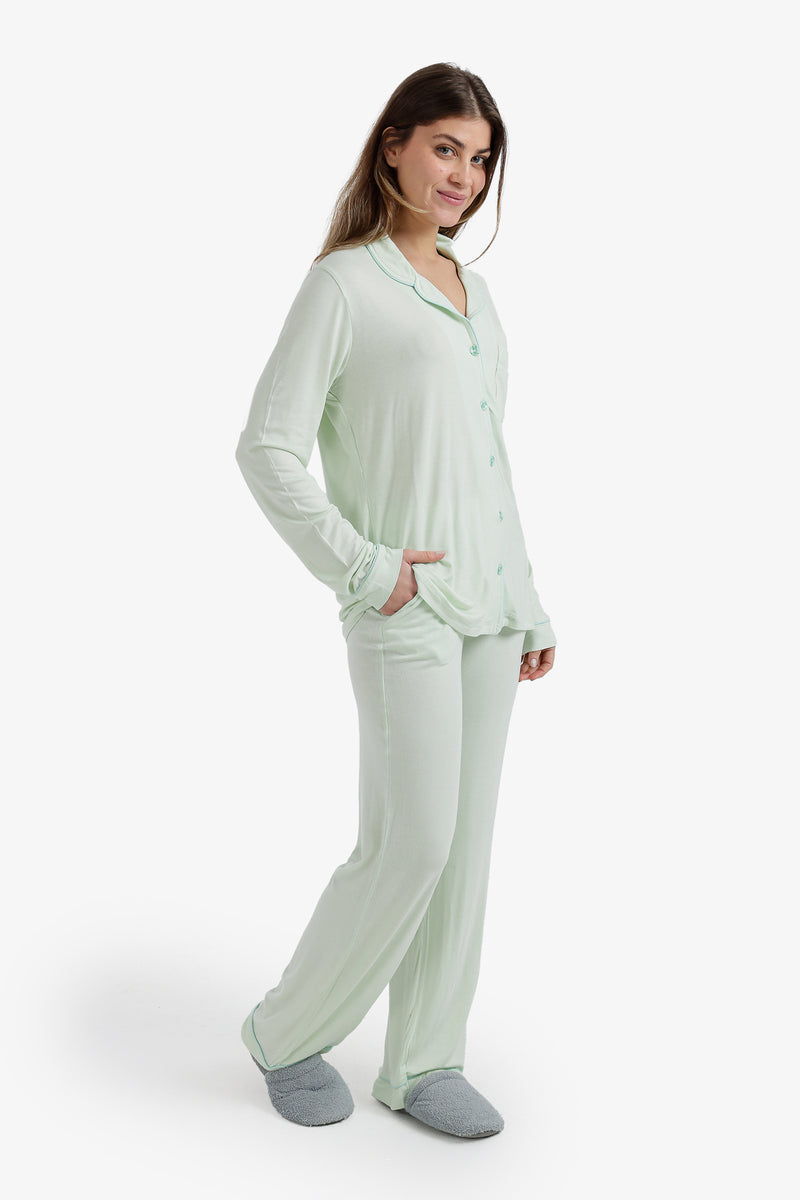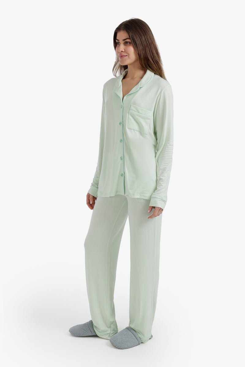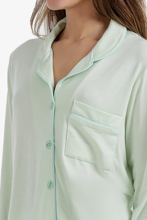Solid Contrast Piping Pajama Set – Mint Green