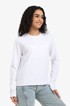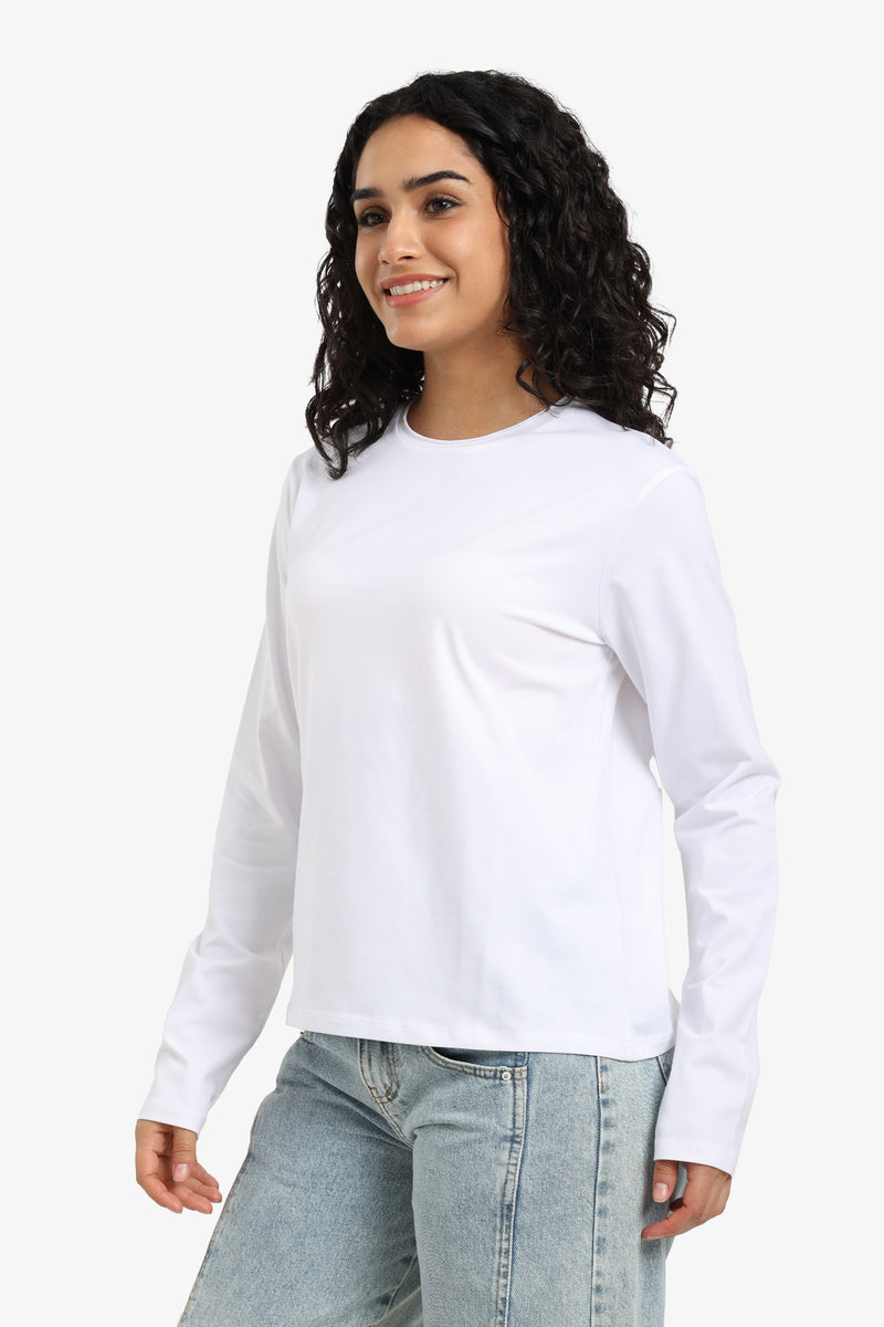 Solid Crew Neck Long Sleeve T-Shirt – Off White