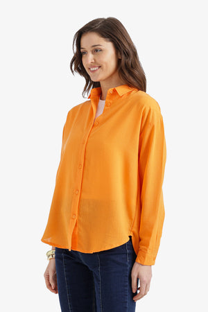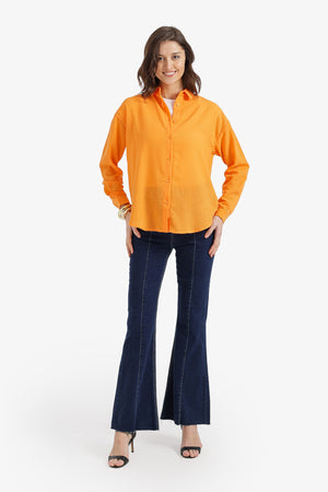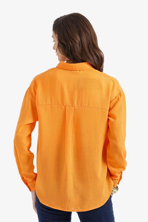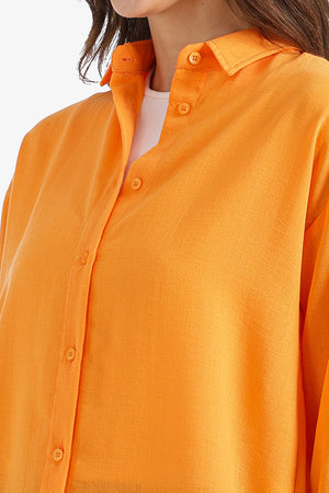 Solid Dropped-Shoulder Relaxed Shirt - Orange