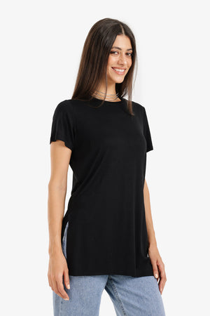 Solid Longline Relaxed T-Shirt – Black