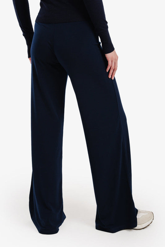 Solid Pattern Relaxed Fit Wide-Leg Pants – Navy