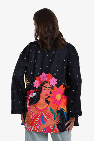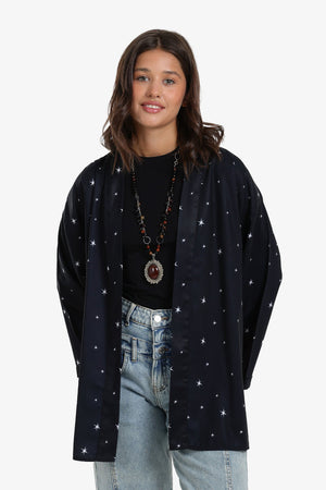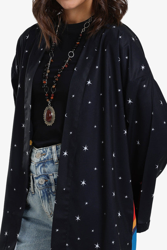 Star Print Kimono – Relaxed Fit Tencel – Black