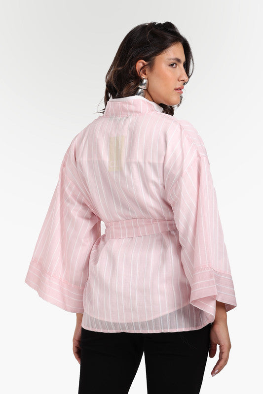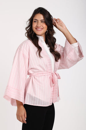 Striped - Detachable Waist Belt Kimono – Rose