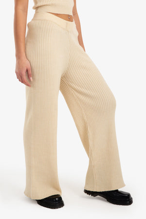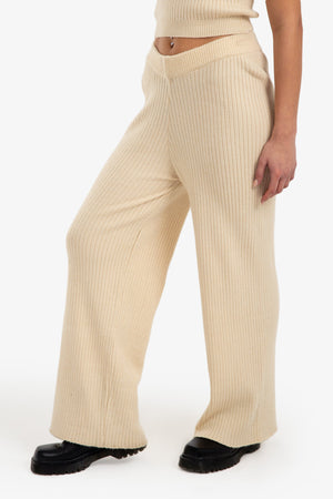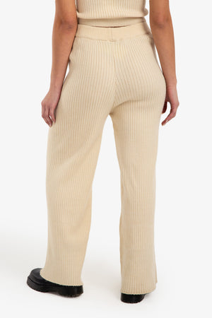 Striped Elastic Wide-Leg Knit Pants – Light Beige