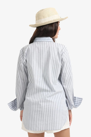 Striped High-Low Button-Down Shirt – Blue