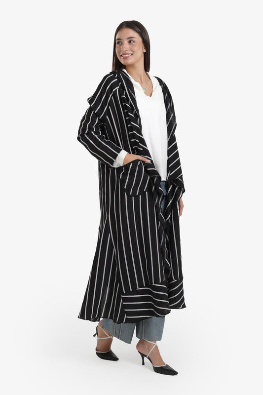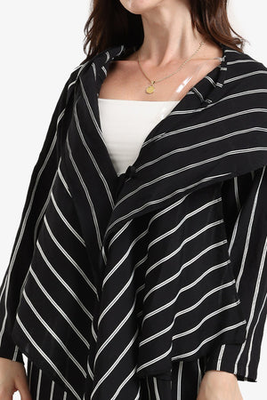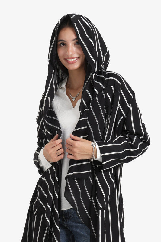 Striped Hooded Cardigan – Black & White