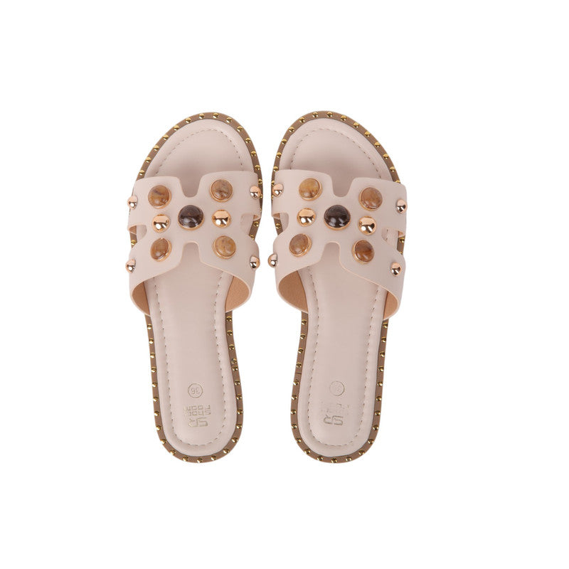 Studded Design Flat Sandals – Off White (SR-3667)