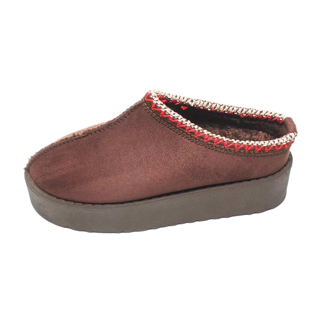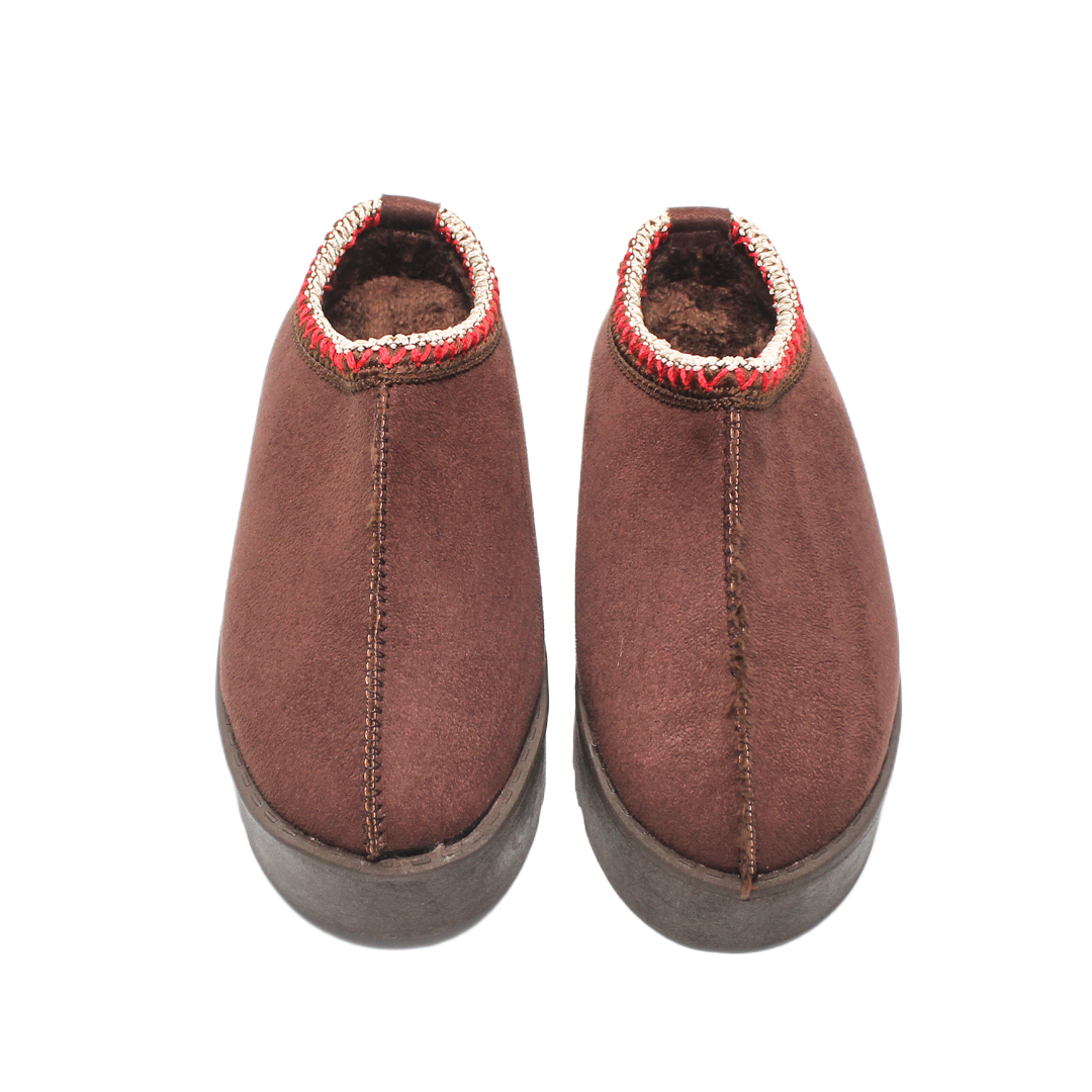 - Key Features: Embroidered trim detailing, soft suede finish, warm fur interior, durable non-slip outsole, and elevated platform for added comfort and insulation