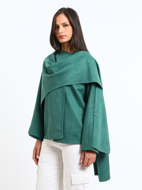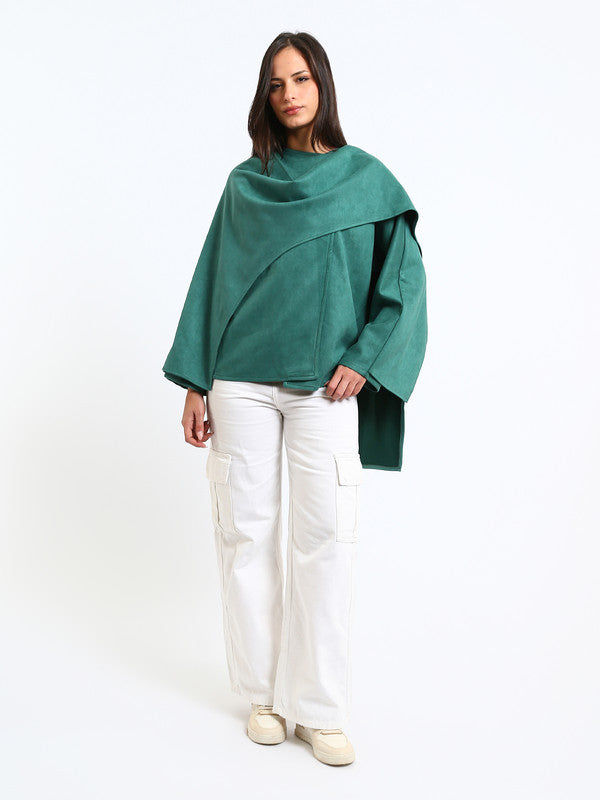 Suede Plain Poncho – Deep Green