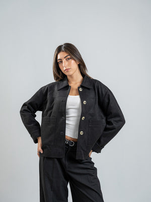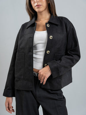 Suede Solid Button Jacket – Black