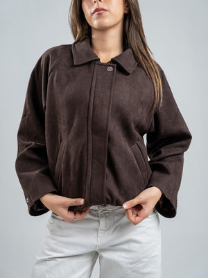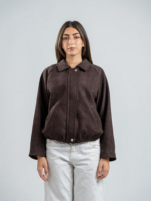 Suede Solid Zip Jacket – Brown