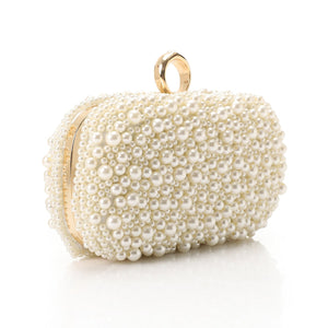 Synthetic Fiber Pearl Embellished Evening Clutch – Beige (4179)