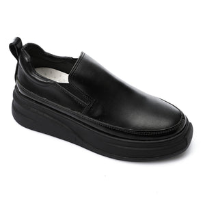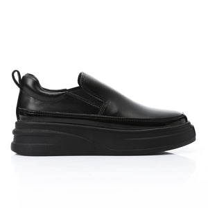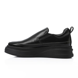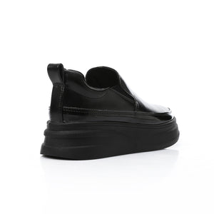 Synthetic Leather Slip-On Sneakers – Black