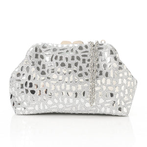 Synthetic Mosaic Mirror Evening Clutch – Silver (4178)