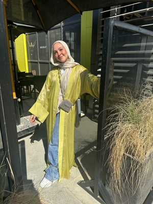 Metallic Satin Kaftan – Lime