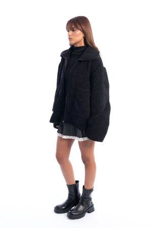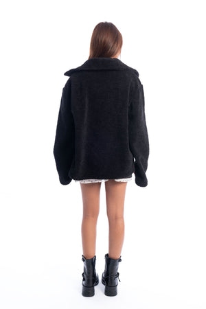 - Oversized Black Teddy Jacket: A cozy and stylish cold-weather essential.