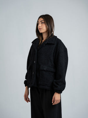 Teddy Fur Solid Jacket – Black