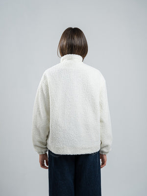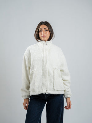 Teddy Fur Solid Zipped Jacket – White