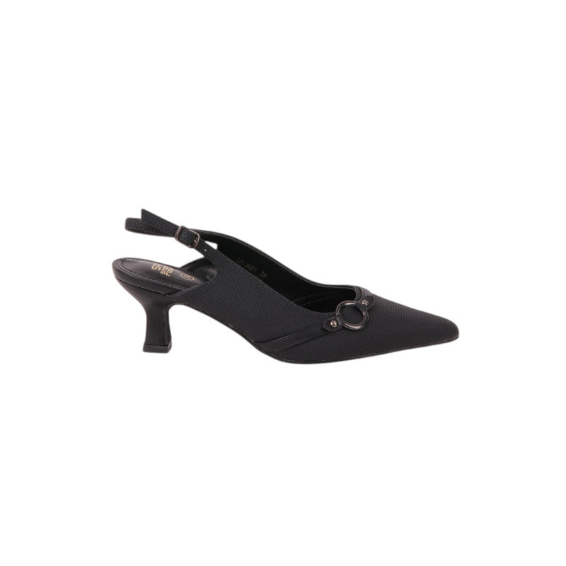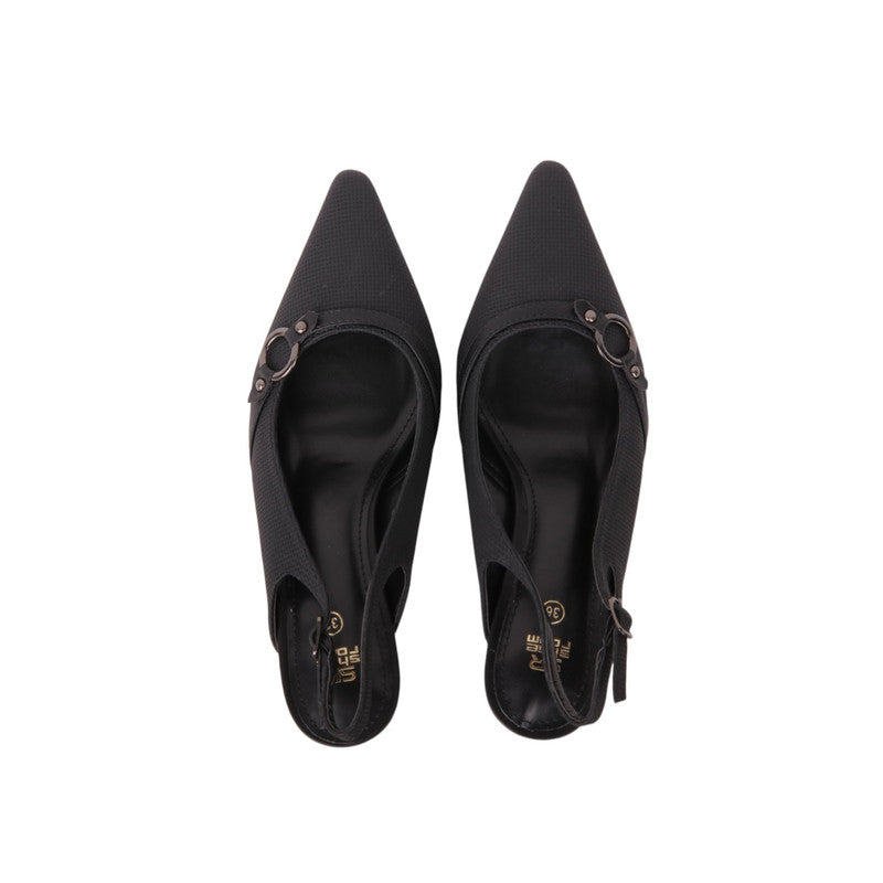 Textured Buckle Slingback Pumps – Black (SR-3621)