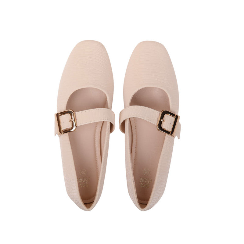 Textured Buckle Strap Ballerinas – Beige (SR-3656)