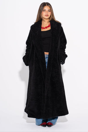 Wool Plain Long Coat – Black