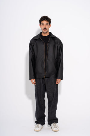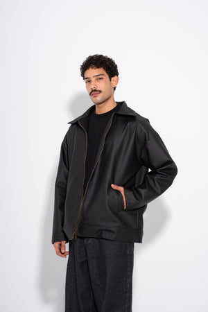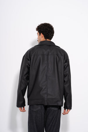 Leather Plain Street Jacket – Black