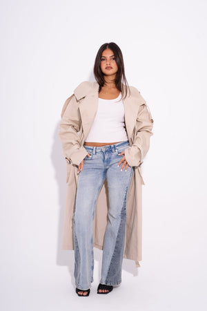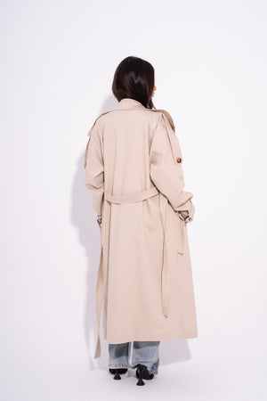 - Design: Classic long trench coat with structured tailoring for a refined look
