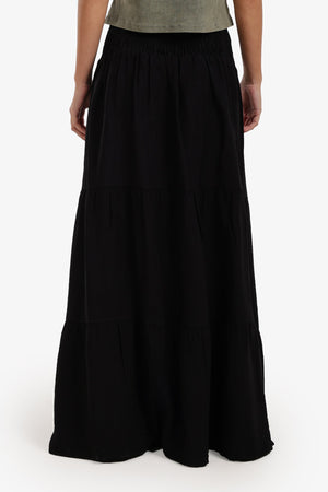 Tiered Elastic Waist Maxi Skirt – Black