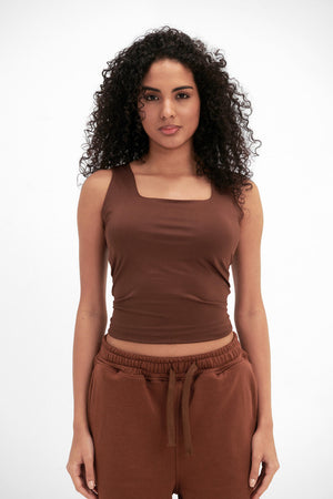 Lycra Square Neck Double-Layer Top - Chocolate