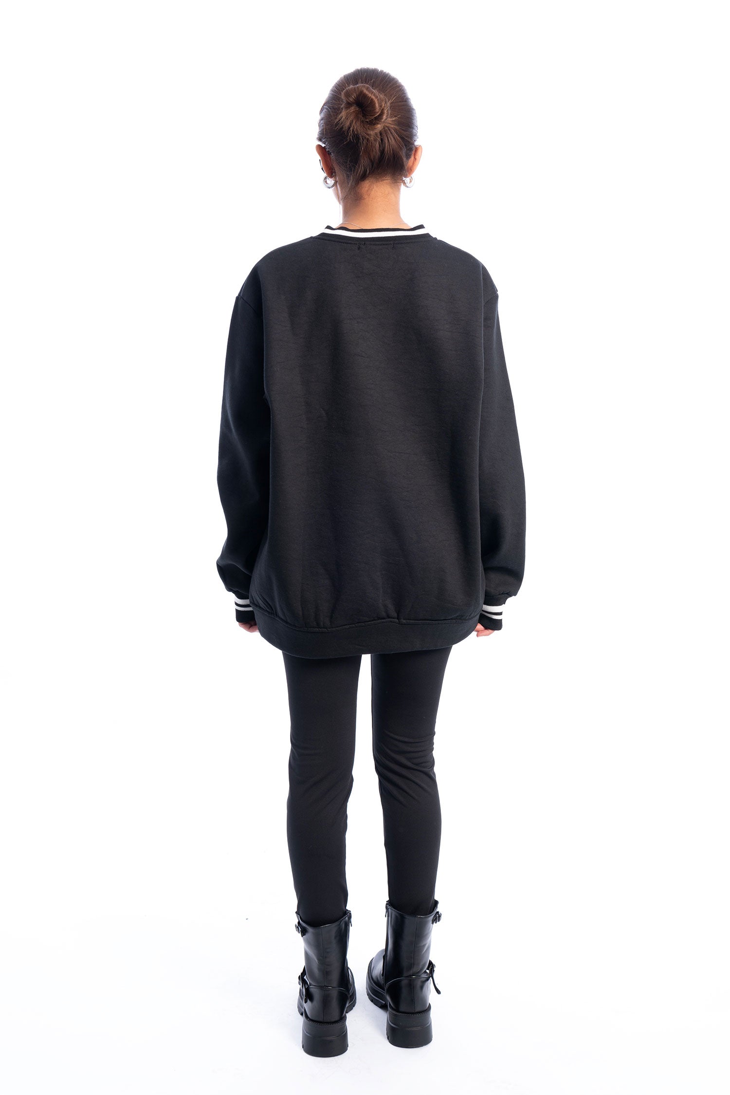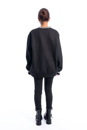 | Striped Drop Sweatshirt With Contrast Trim, Long Sleeve Sweater Length 70 CM |