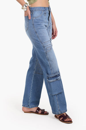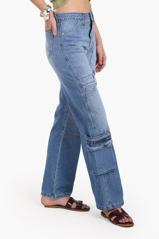 Washed Straight Cut Cargo Jeans – Light Blue