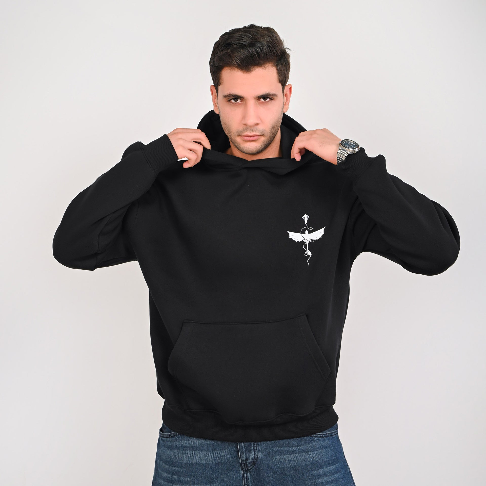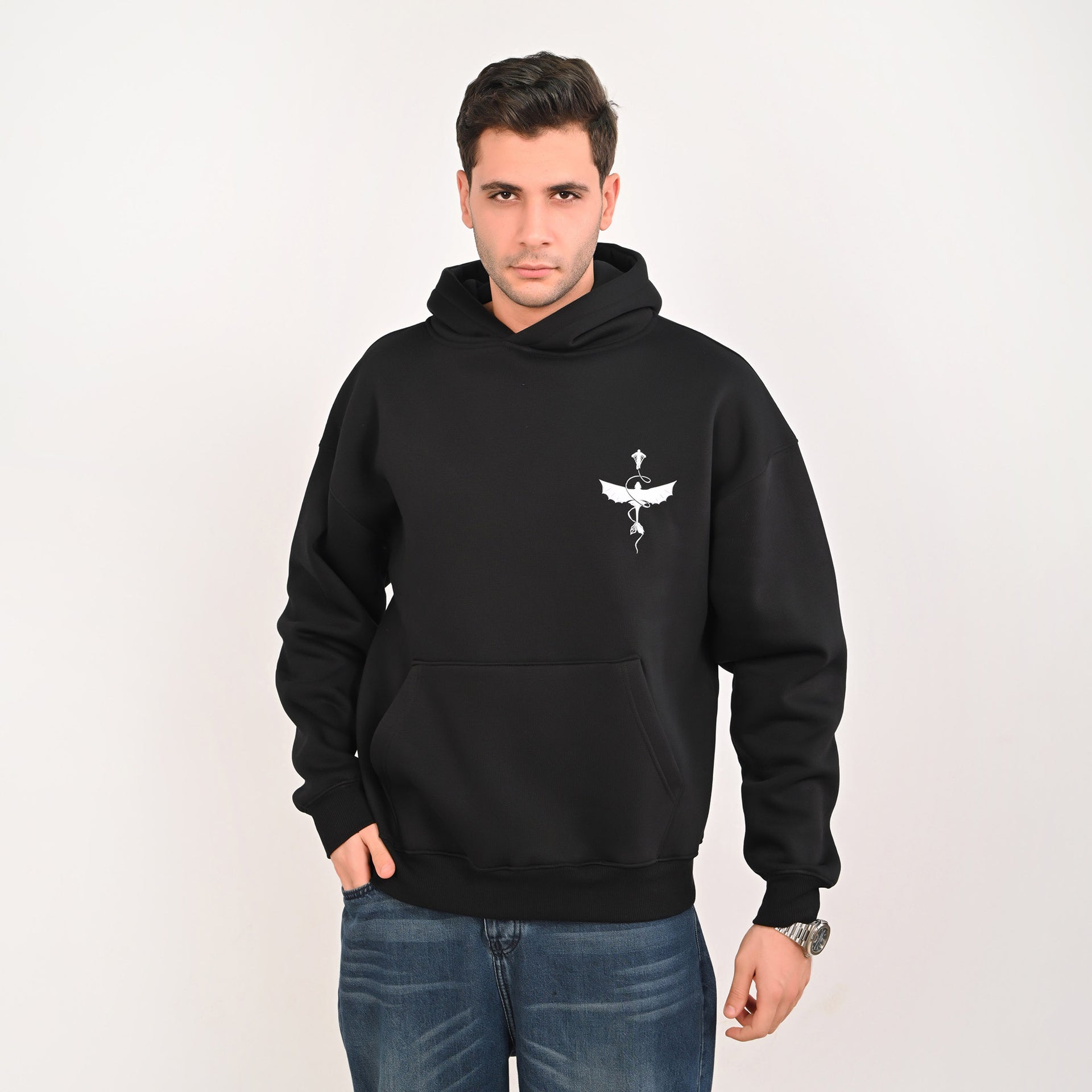 Wings Graphic Oversized Hoodie – Black