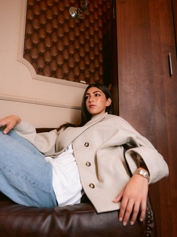 - Details: Unique cross-button design for a modern minimalist look; smooth wool blend for lightweight warmth