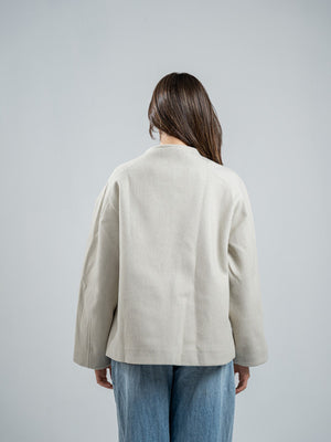 Wool Blend Felt Asymmetric Button Jacket – Greige