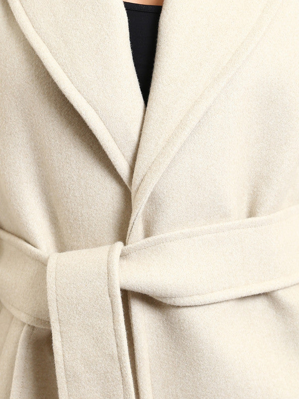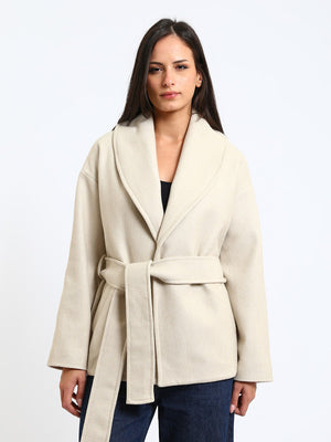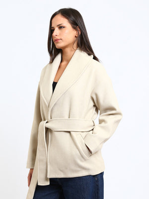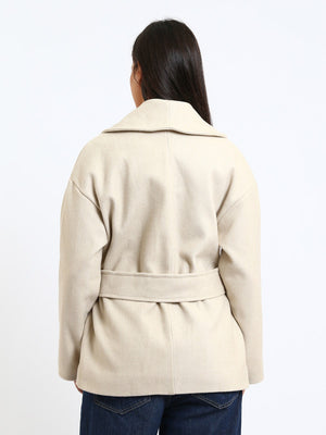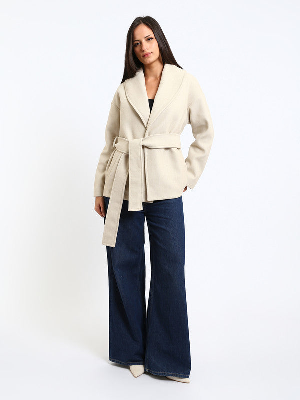 Wool Blend Felt Solid Belted Jacket– Greige