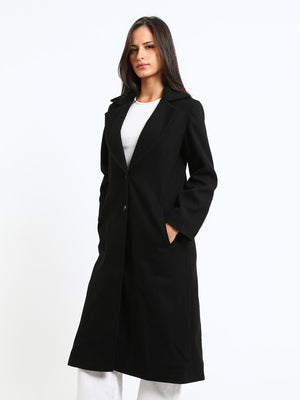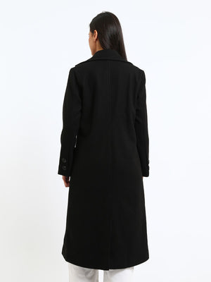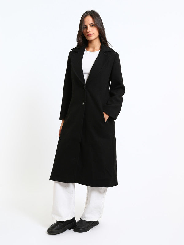 Wool Blend Felt Plain Two Button Long Coat – Black