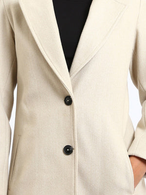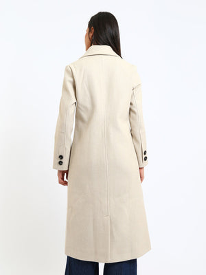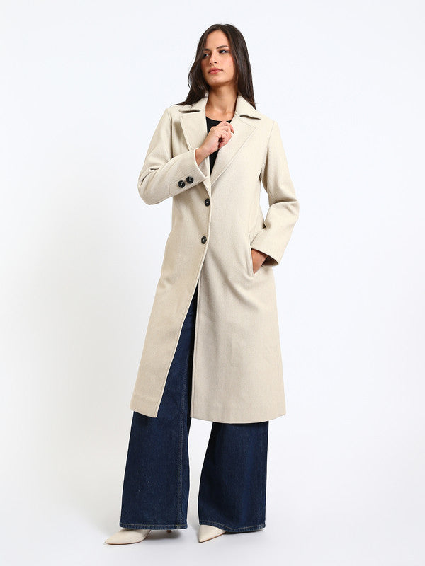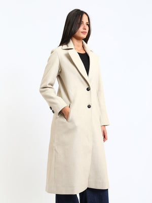 Wool Blend Felt Plain Two Button Long Coat – Greige