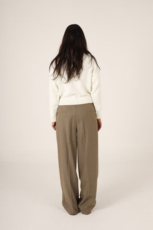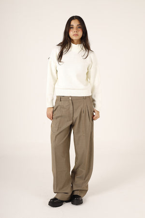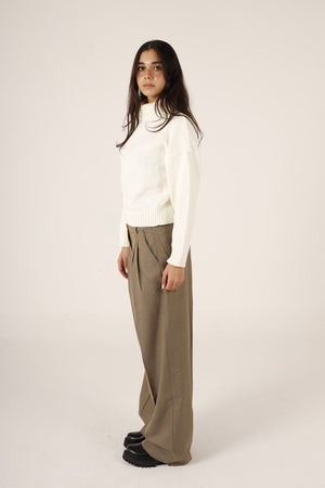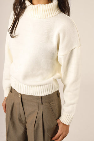 Wool Solid Turtle Neck Pullover – Off White